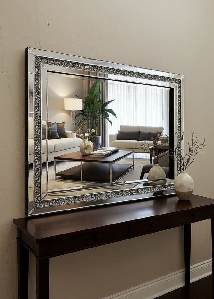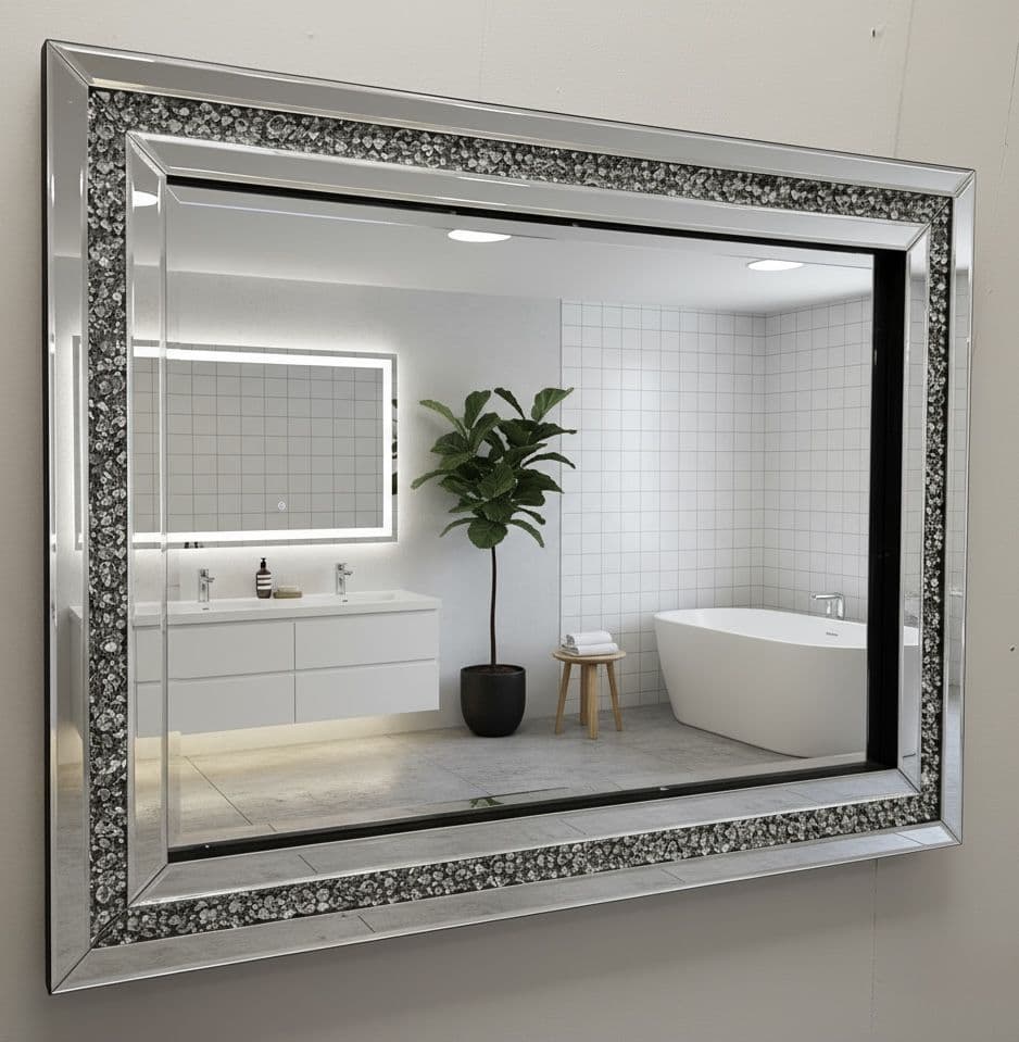 Mirror = Prestige 4mm Pilkington Mirror ensuring crisp & clear reflections, High Quality Individual Diamond Crystals